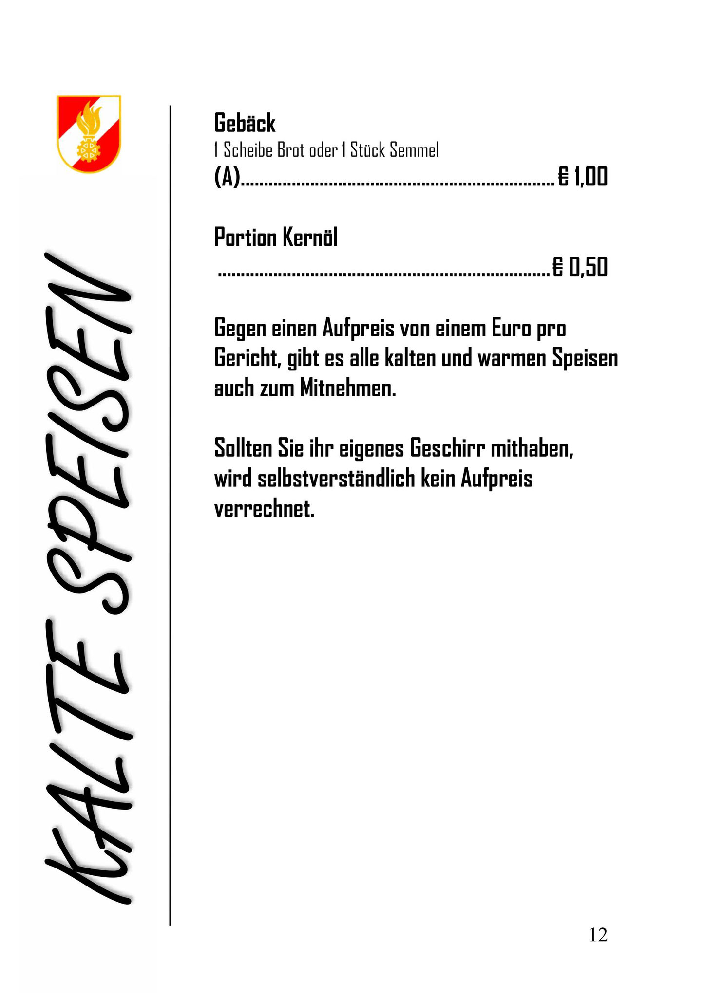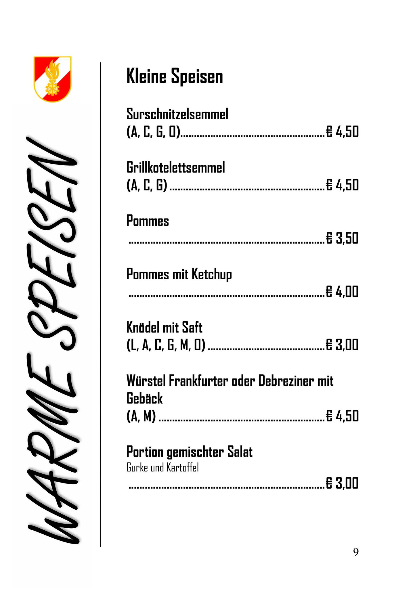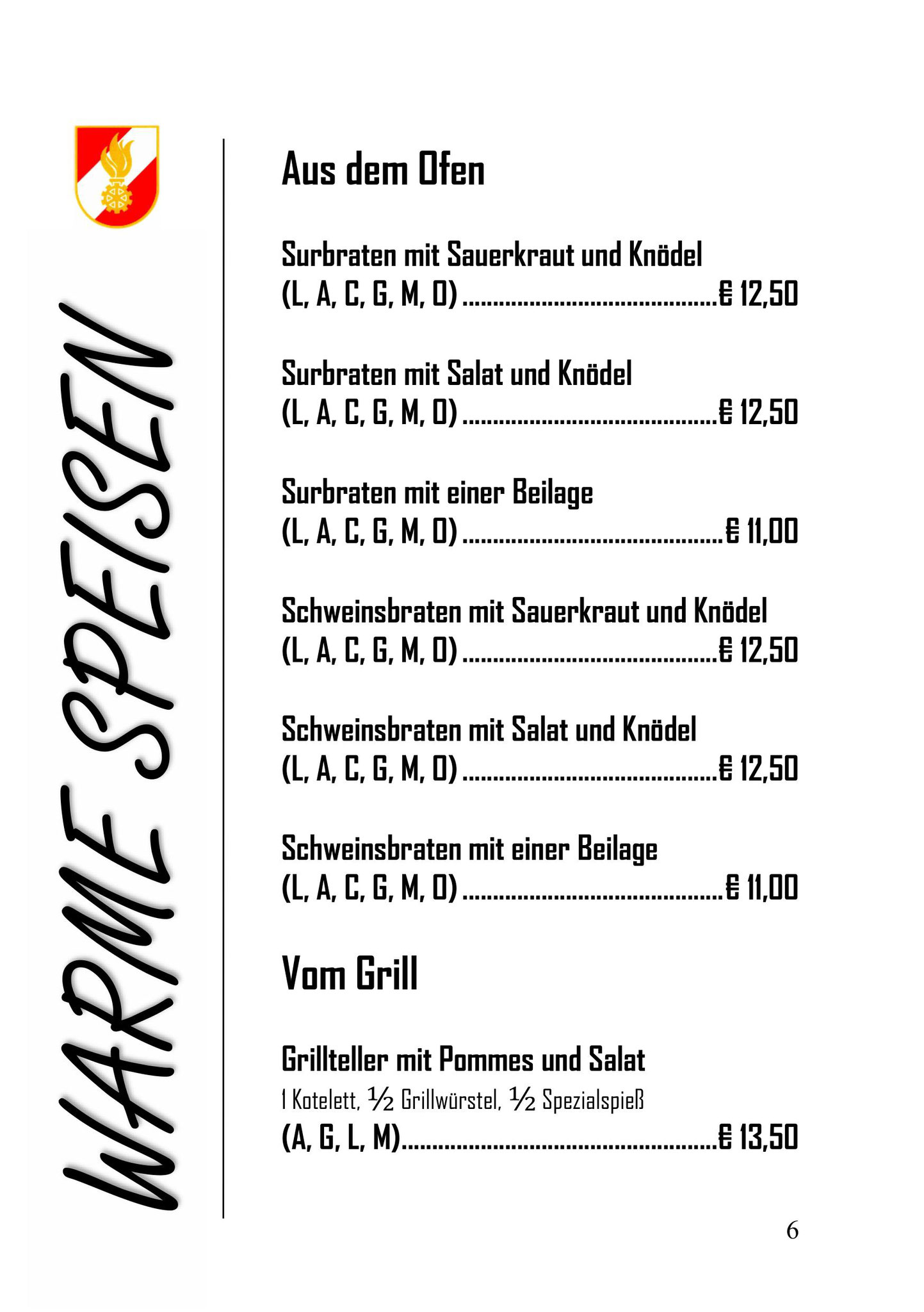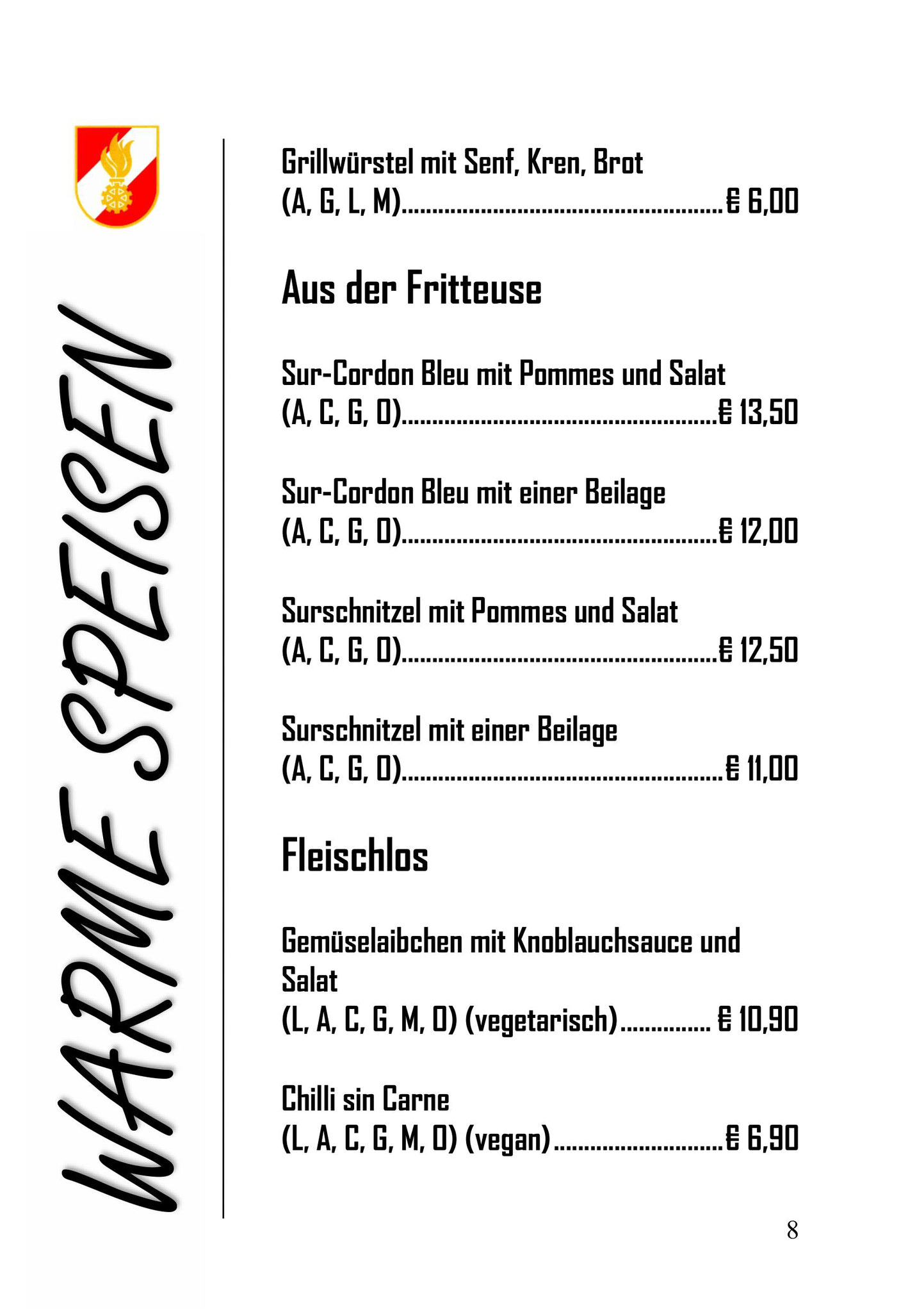 Speisekarte Klingfurther Feuerwehrfest 2025