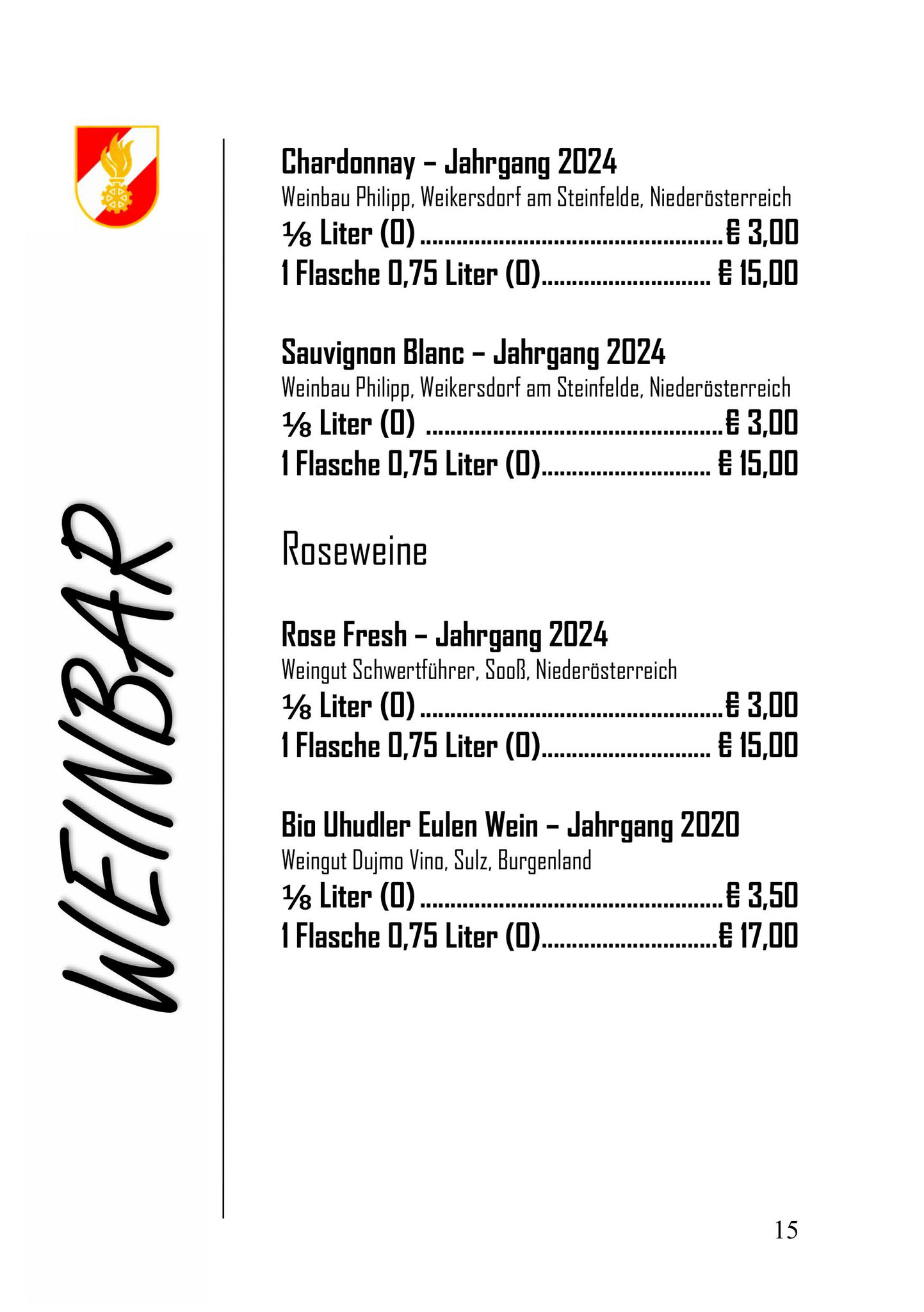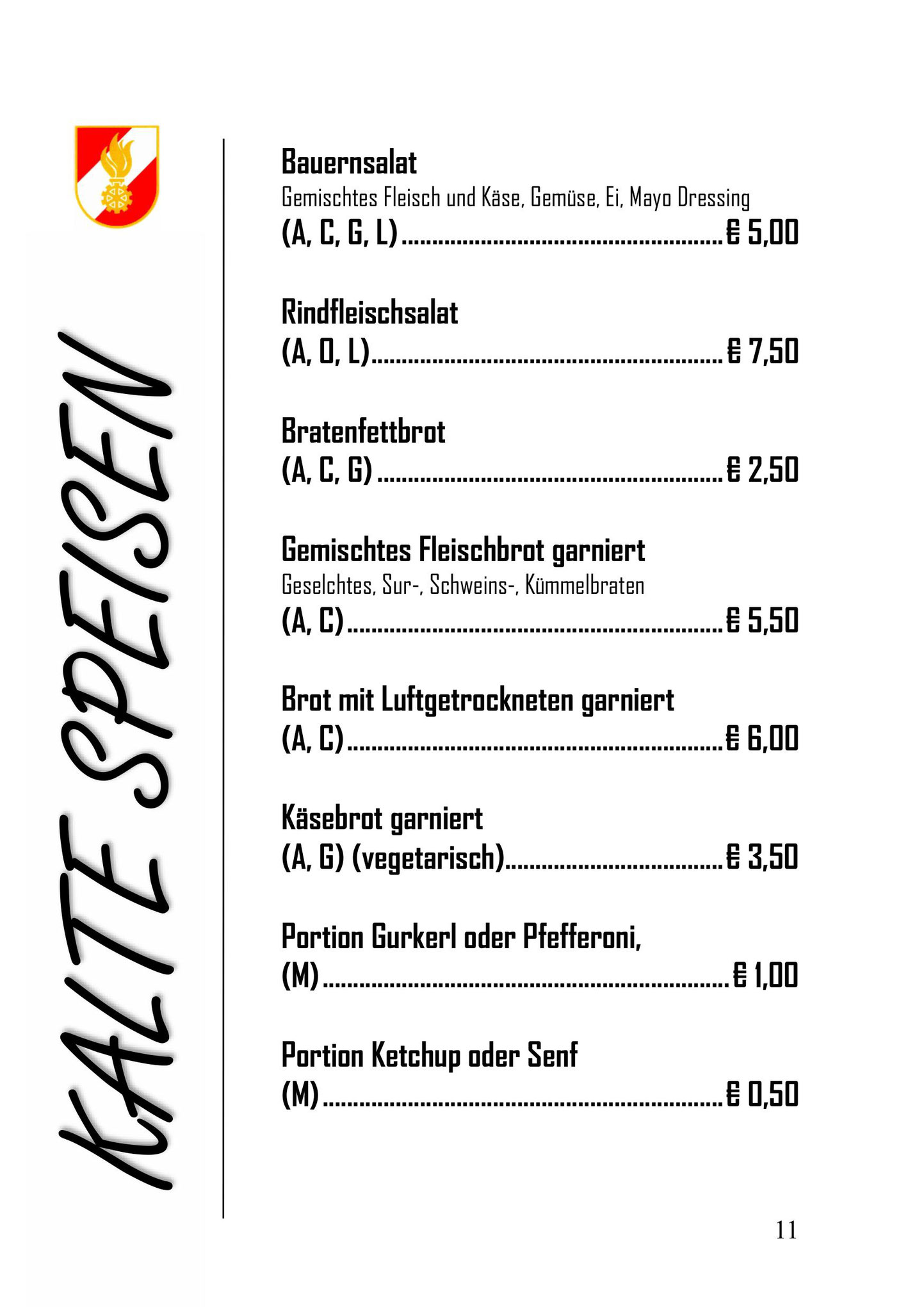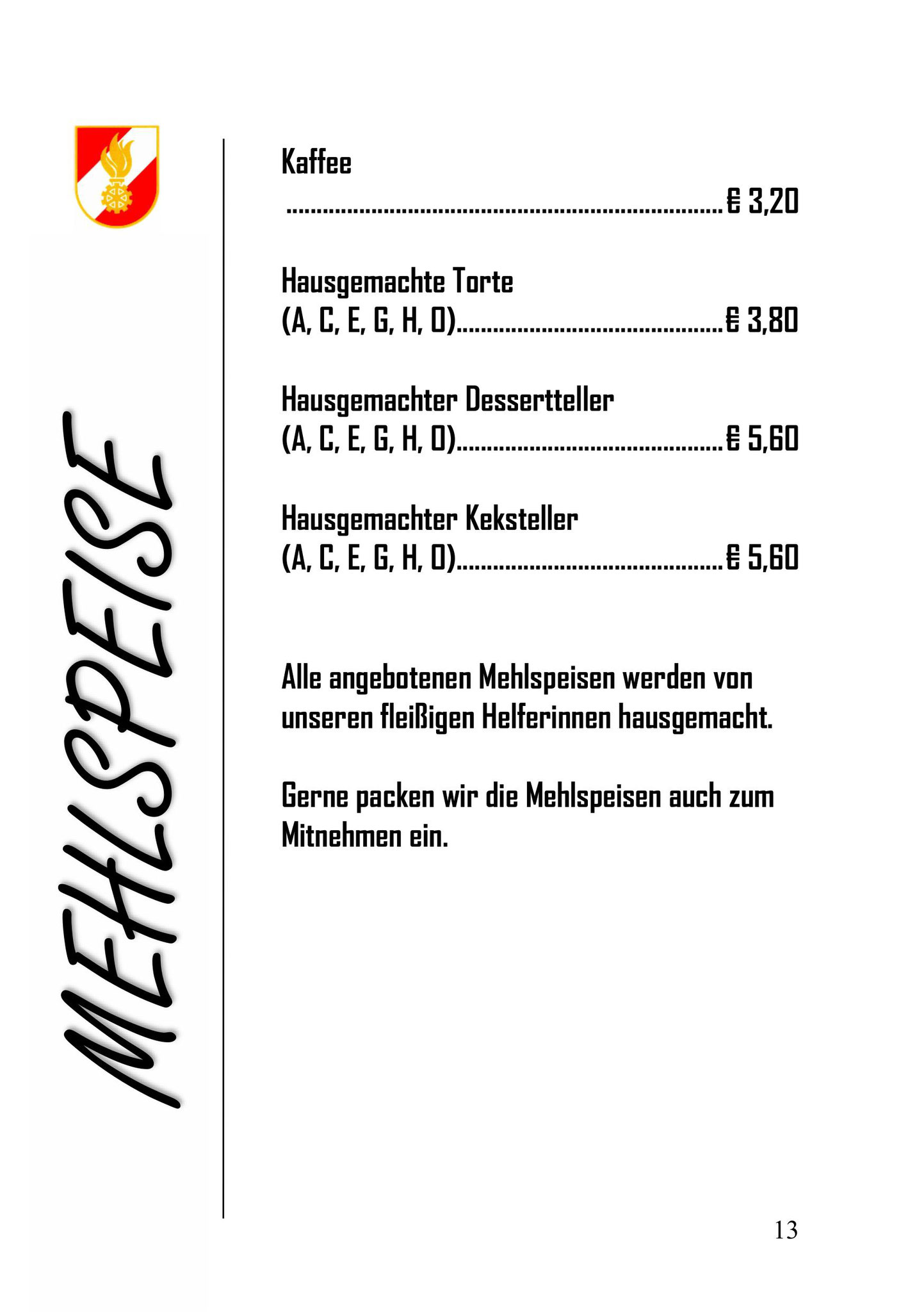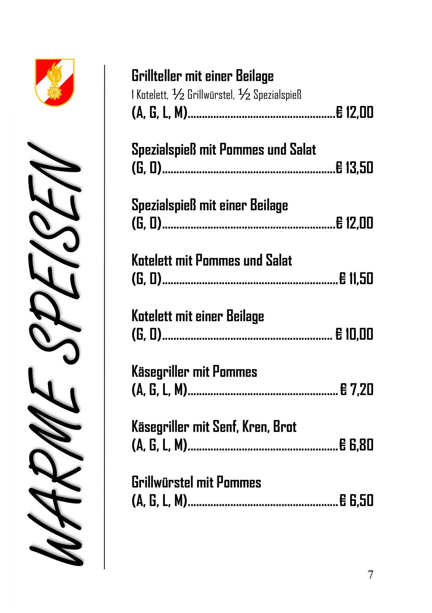 Speisekarte Klingfurther Feuerwehrfest 2025