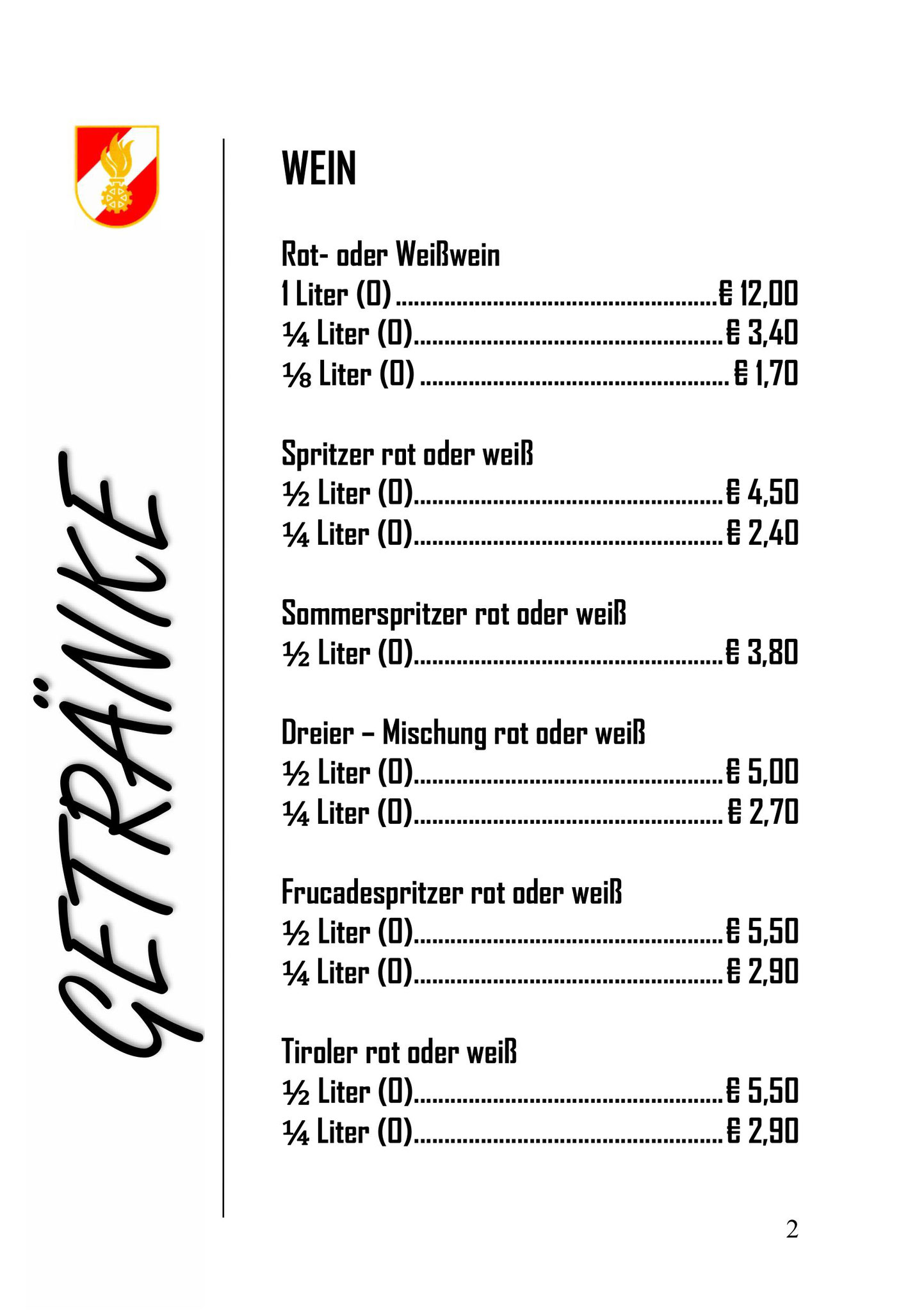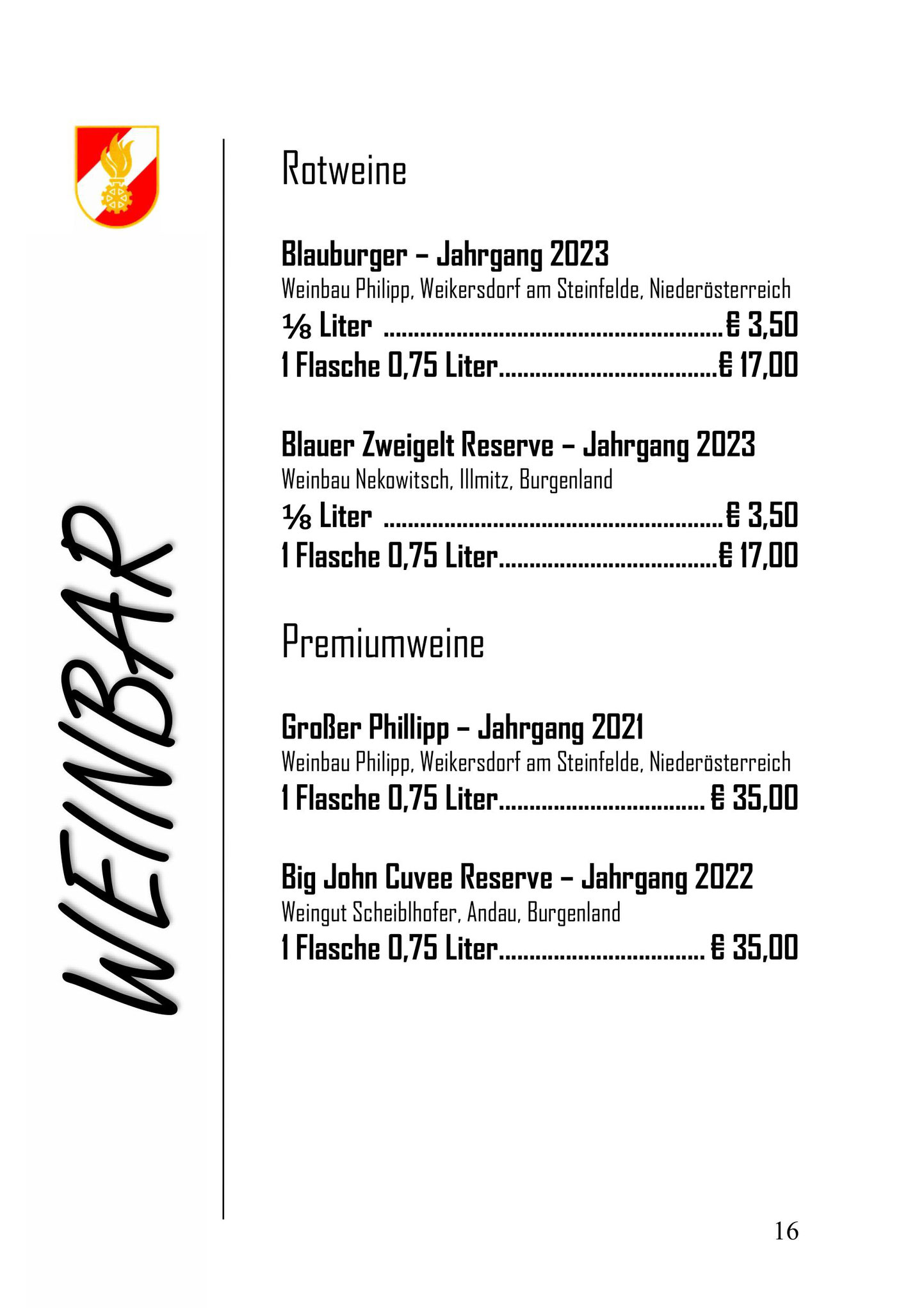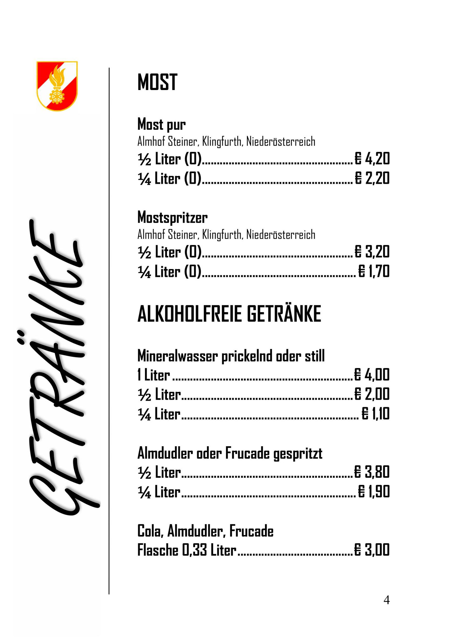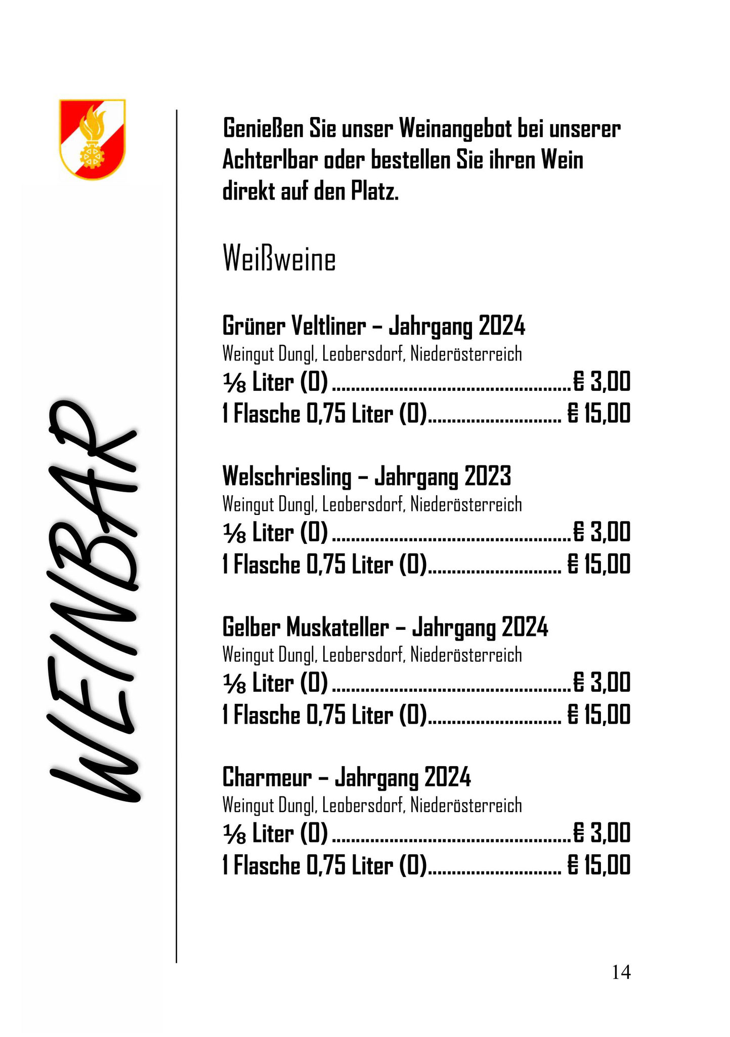 Speisekarte Klingfurther Feuerwehrfest 2025