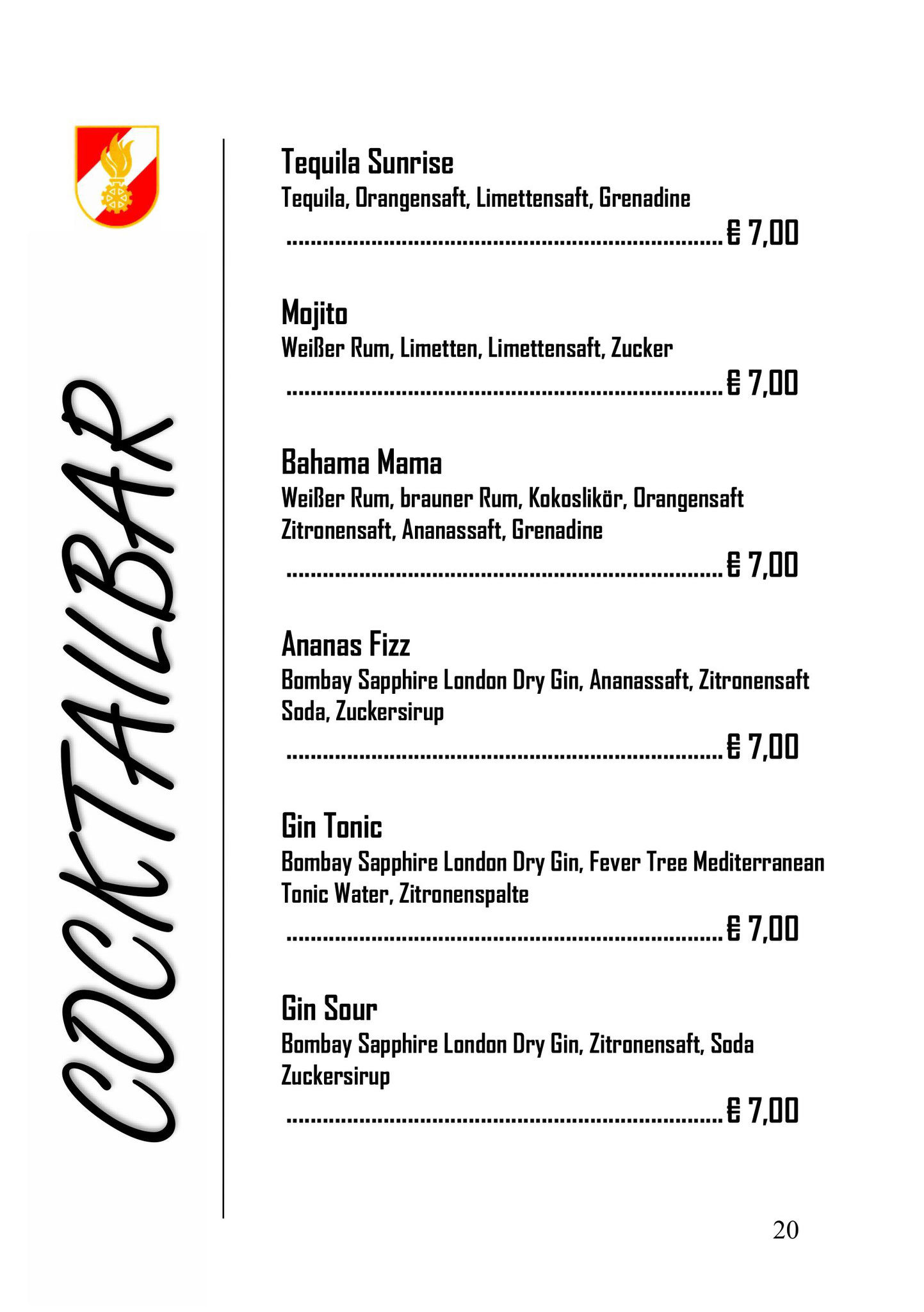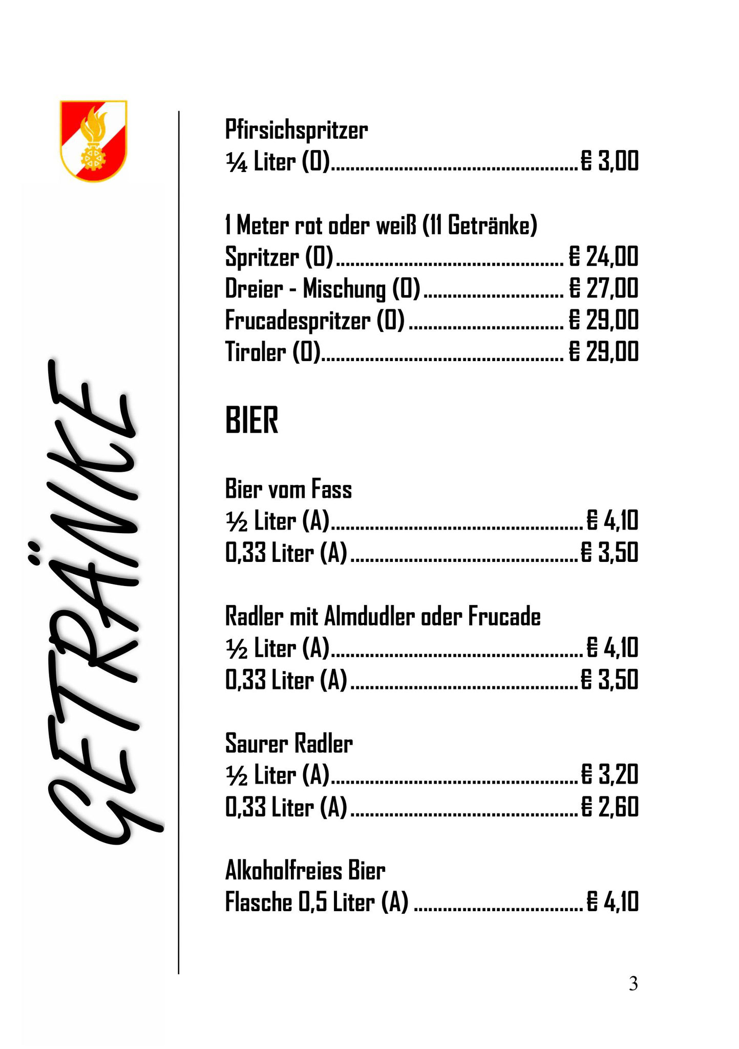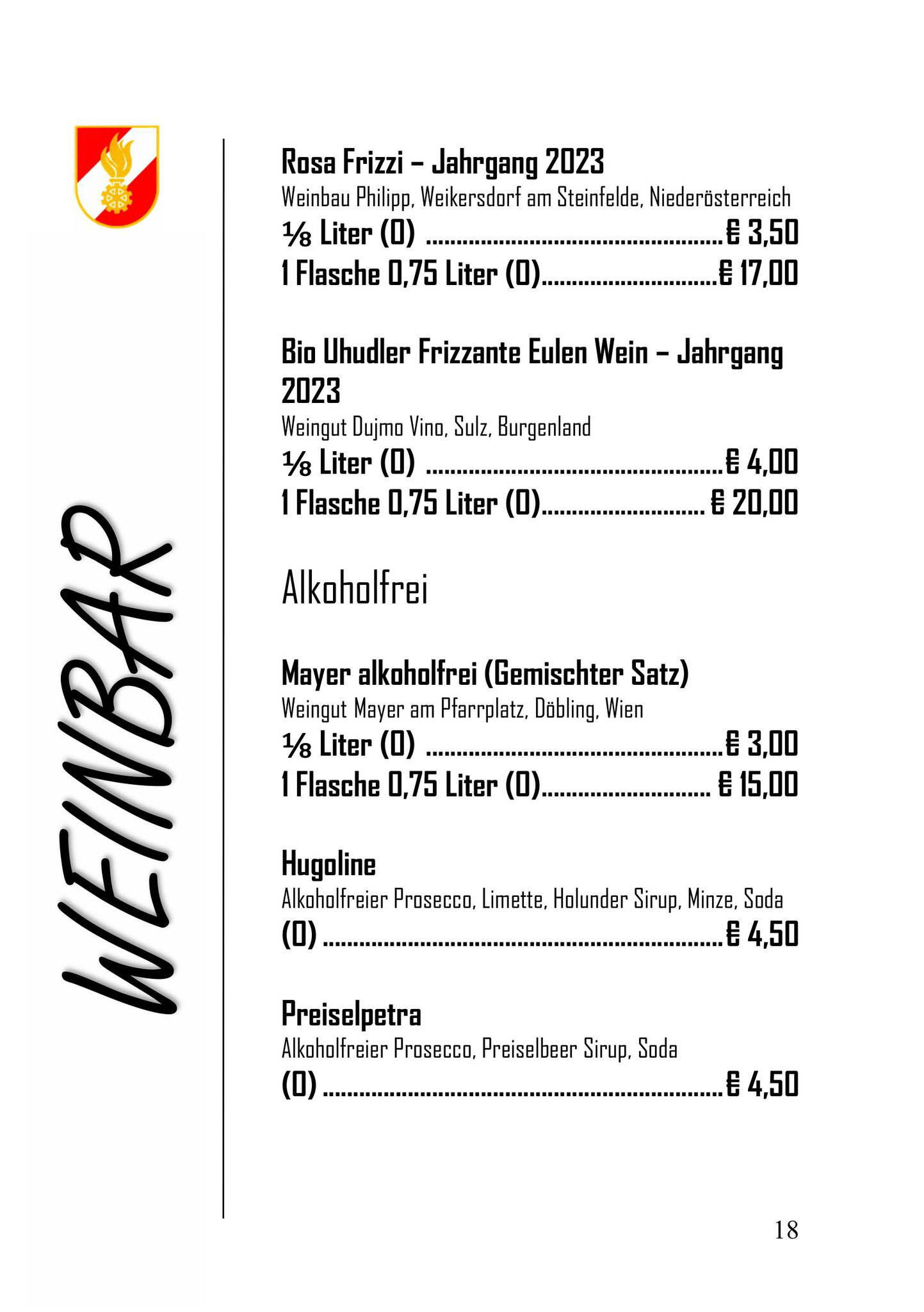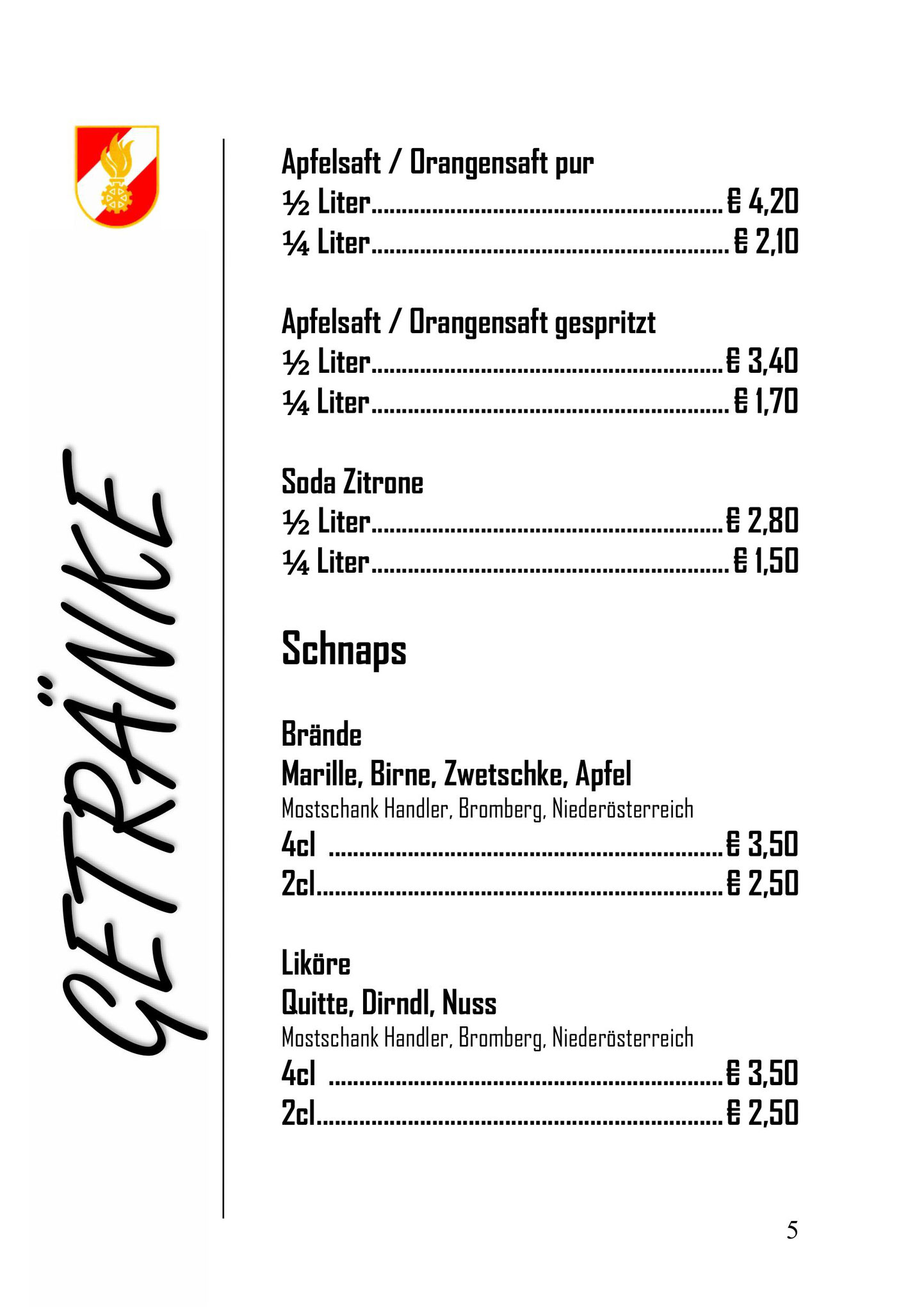 Speisekarte Klingfurther Feuerwehrfest 2025